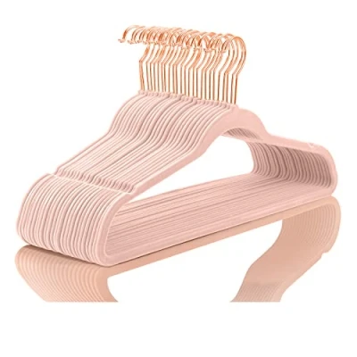 Dorm room essentials hangers for college students.Full Adult Standard Size- (LxWxH): 17.5"x0.2"x9" inches.Made of Top Quality 2025 ABS Plastic,Eco-friendly Blush Pink Nylon Flocked with Rosegold Hook.VALUE PACK of 30 pcs SUPER STRONG- MIZGI huggable hangers that it will steadily hold even the heaviest clothes in your closet, can hold large capacity from 11lbs to 18lbs.It is stronger and lighter than wooden hangers but sturdy to hold heavy coats without getting bent NONSLIP - Supreme soft velvet instead of plastic or metal leaves no crease on the pant when you fold them over.Prevents slippery or wide neck clothes from slipping off, no shedding or fading on your white clothes with latest flocking technique MAXIMIZE CLOSET SPACE - Designed MIZGI hangers Increases Closet space by as much as 50 percent.The slim and sleek design efficiently works, maximizing space and adding class, helping you organize your wardrobe in the most space efficient manner SWIVEL ROSEGOLD HOOKS - can be 360 degree rotated, which easy sorting of clothes no matter which direction you hang your clothes, strongly attached to our durable hanger so the hook doesn't detach or snap easily