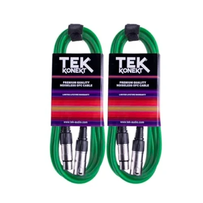 Premium XLR Cable for a Clear Audio Signal with Balanced Male to Female Microphone Lead, plus Tie, professional DJ, stage and studio (Green, 2 x 10m)