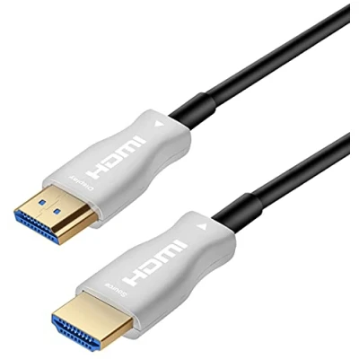 Gold plated optical HDMI cable (fiber optic + copper) connects devices over long distances of up to 100m without data loss, even in areas with strong electromagnetic radiation. With its extremely thin and lightweight design, it is ideal for all types of installations. High speed cable with data transfer speeds of up to 18 Gbps (600 MHz). Plug housing conveniently labelled with "source" and "display" to ensure correct installation - one-way transmission - completely without power supply - requires no external power source Ultra-flat 4.6 mm outer diameter, fireproof outer sheath with UL approval, cable length: 15 m. International products have separate terms, are sold from abroad and may differ from local products, including fit, age ratings, and language of product, labeling or instructions.