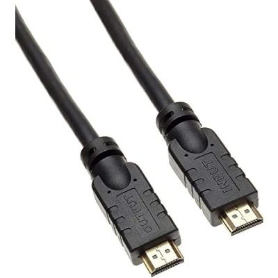 HDMI High Speed with Ethernet Active Cable length: 15 m, gold-plated connectors Supports resolutions: up to 4096 x 2160 pixels without interlace or low 1080p Full HD/ 1080i/ 720p/ 720i - Moulded housing - Support HDMI 1.4 A lower Support 4K, Deep Color, 3D, xvYCC (xvcolor), automatic lip synchronization, Arc, CEC, HDCP, Dolby TrueHD, HEC - transfer rate: 10, 2GB/s; 340 MHz HDMI ethernet channel - Adds high speed network to an HDMI link so users can fully utilize their IP enabled devices without separate Ethernet cable - Colour: black - The output of the HDMI port should be connected to the device (e.g. hdtv), never place it on the video source (e.g. B. Dvd). Connection with the name input plug in the DVD or BlueRay. Connection with the name output to connect the LCD, TV or projector.