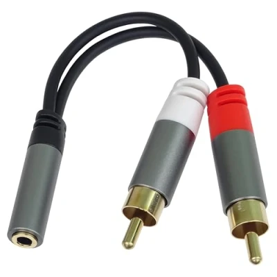 PremiumCord HQ Cable Splitter Jack Socket 3.5 mm to 2 x RCA Stereo Female Male Aux Headset Audio Shielded Metal Connector Colour Black M/F Length 15 cm