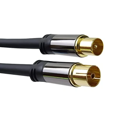 HQ connection cable of the TV antenna, 4x shielded, m/f, 1.5 m Suitable for connecting a TV, radio or a set-top box to a TV socket Connectors: IEC antenna plug / IEC antenna socket Impedance: 75 ohm, shielding efficiency: 135 dB Gold-plated connectors for optimal transmission of high-frequency signals, inner conductor material: copper conductor Optimised bending protection and flexible cable housing High-quality metal connectors Length: 1.5 m Compatible devices: TV