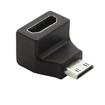 Mini HDMI C to HDMI Male to Female Curved Connector Adapter Connectors: Mini HDMI C Male / HDMI Female Injected reduction at an angle of 90° Resolution: 4K @ 60Hz, FULL HD 1080p Nickel plated connectors, black colour