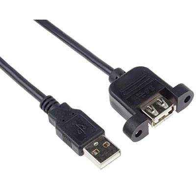 USB 2.0 extension cable with screw connection Desktop USB Desk Mount Holder for MP3 Players, USB Output from TV to Connect External USB Storage or Flash Storage First connection: USB type A male Second connection: USB type A female Suitable for flash drives, mice, cameras etc. Transmission rate 0.48 Gbps - Black colour - Cable length 2 m distance between the axles of the two screw holes: 29 mm