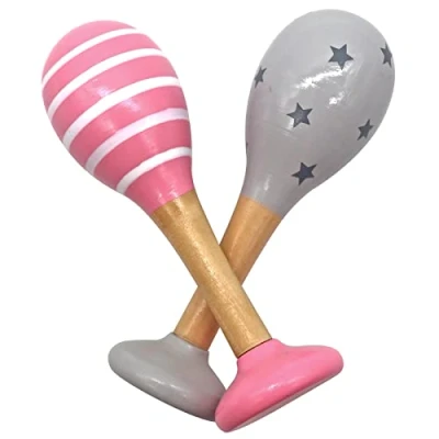 PREMYO Baby Rattle Maracas Wooden Musical Instruments for Toddlers Newborn Sensory Toys Stripes Stars Grey Rose