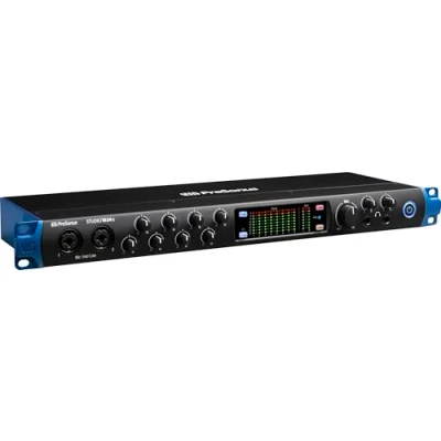 With the PreSonus Studio 1824c USB-C Audio Interface discover your your recording, streaming, and podcasting potential; This 1U rack-mounted powerhouse delivers pristine 24-bit/192 kHz audio quality This audio interface features versatile connectivity with 8 mic/instrument/line inputs, 6 mic/line inputs featuring XMAX Class A mic preamps and +48V phantom power, and 8 channels of ADAT Optical I/O Professional input and output metering let you keep an eye on your levels; A flexible DSP mixer lets you create four discrete near-zero-latency monitor mixes; Front-panel Mute, Mono, and level controls let you work with your main mix Seamlessly connect via USB-C to your Mac or PC; Works with most third party software, or you can get started with industry-leading DAW software including Ableton Live Lite and Studio One Artist, empowering you with essential tools for recording, production, and more Backed by PreSonus's reputation for innovation and quality, the Studio 1824c ensures reliability and performance for all your audio production needs; Enjoy further peace of mind with PreSonus' 2-year limited warranty