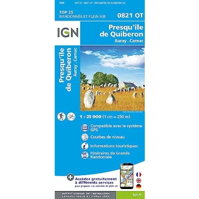 Top25 0821OT Presq'ile de Quiberon walking and hiking map with free distance scale ruler