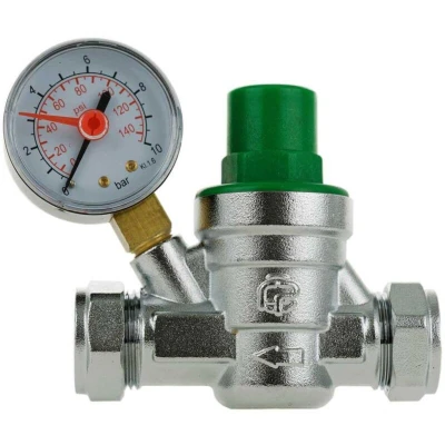 Pressure Reducing Valve & Gauge 15mm 22mm Compression 0 6 Bar Adjustable