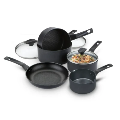Transform your cooking experience with 9 X Tougher Non-Stick! Designed to deliver exceptional performance and durability, this Prestige Frying Pan, Saucepan & Milk Pan Set comes with a Free 10 Year Guarantee for absolute peace of mind! What does 9 x Tougher mean? This Prestige Non-Stick Pan Set is 9 times tougher than titanium, and features a dimpled surface for superior non stick, for easy cleaning and healthier meals with less oil. Perfect for low fat, nourishing meals for the whole family. A tough steel base ensures food cooks evenly without hotspots, and the PFOA free non stick coating is applied both inside and out for quick & easy clean up. The whole set is dishwasher safe too! The handles are ergonomically designed for comfort and a confident grip, and stay cool when cooking. The glass lids allow you to monitor cooking whilst keeping all the goodness & nutrients locked in. Key Features: 9 X Tougher Non-Stick Coating: Enjoy effortless cooking and cleaning with our advanced non-stick technology. Oven Safe up to 180°C: Versatile cookware that transitions seamlessly from stovetop to oven. Dishwasher Safe: Spend less time cleaning and more time enjoying your meals. Induction & All Hob Suitable: Compatible with all types of hobs, including induction. 10 Year Guarantee: Invest in quality with our free 10-year guarantee. The 9 X Tougher Prestige Non-Stick Pan Set includes: 14cm Diameter - Milk Pan & Lid 16cm - Small Saucepan & Lid 18cm - Medium Saucepan & Lid 20cm - Large Saucepan & Lid 25cm - Medium Frying Pan