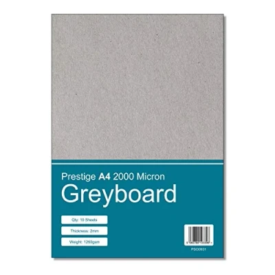 Prestige A4 Greyboard 2000mic 2mm Thick Craft Grey Board Mounting Backing Modelling (A4 Size 2000 Micron 10 Sheets)