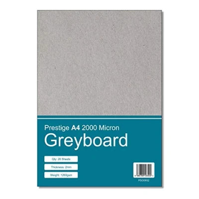 Prestige A4 Greyboard 2000mic 2mm Thick Craft Grey Board Mounting Backing Modelling (A4 Size 2000 Micron 20 Sheets)