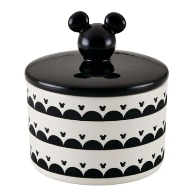 BRING THE MAGIC of Disney's Mickey Mouse to your kitchen with these airtight ceramic jars with lids from the Prestige x Disney Monochrome Collection, kitchenware designed to make ordinary moments feel extraordinary ADD A DASH OF WONDER to everyday cooking with the timeless aesthetic of Disney's early-era black-and-white animated masterpieces. Made from a glazed ceramic with an elegant monochrome Mickey Mouse print FUN KITCHEN CANISTERS featuring a black and white Mickey Mouse print and an iconic 3D Mickey Mouse shaped easy to grip handle. Ideal gift for Disney fans and cooking enthusiasts AIRTIGHT storage containers with a silicone seal lid - ideal for storing dry goods and use as ceramic tea coffee sugar canisters. They're also dishwasher safe for easy cleaning SET OF 3 AVAILABLE: Small, medium and large jars available as a set of three, or individually. This medium jar has the following dimensions: 13.7cm diameter and 14.6cm height
