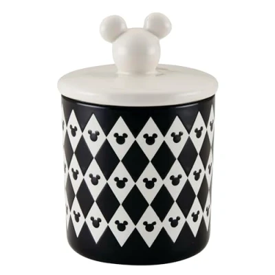 BRING THE MAGIC of Disney's Mickey Mouse to your kitchen with these airtight ceramic jars with lids from the Prestige x Disney Monochrome Collection, kitchenware designed to make ordinary moments feel extraordinary ADD A DASH OF WONDER to everyday cooking with the timeless aesthetic of Disney's early-era black-and-white animated masterpieces. Made from a glazed ceramic with an elegant monochrome Mickey Mouse print FUN KITCHEN CANISTERS featuring a black and white Mickey Mouse print and an iconic 3D Mickey Mouse shaped easy to grip handle. Ideal gift for Disney fans and cooking enthusiasts AIRTIGHT storage containers with a silicone seal lid - ideal for storing dry goods and use as ceramic tea coffee sugar canisters. They're also dishwasher safe for easy cleaning SET OF 3 AVAILABLE: Small, medium and large jars available as a set of three, or individually. This small jar has the following dimensions: 10cm diameter and 15cm height