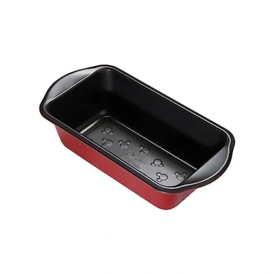 BAKE WITH MICKEY MOUSE - Create your own Mickey and Friends inspired bakes with these 9 inch loaf tins LARGE HANDLES - Make great memories and bake with peace of mind. These loaf tins are designed with extra large handles for easy grip and firm hold MICKEY MOUSE LOGO NON STICK SURFACE - This red loaf tin has a black non stick PFOA-free interior with a textured raised signature Mickey Mouse logo pattern surface to assist airflow and release. This prevents cakes from sticking & holds heat for perfect baking EASY CLEANING AND OVEN SAFE - The high quality non stick interior and exterior are easy cleaning (hand wash only). This cake pan is also fridge and freezer safe whilst being oven safe up to 230°C to ensure the ultimate versatility HEAVY GAUGE STEEL - Made from heavy gauge steel that's durable yet lightweight and finished with rolled edges for anti warping; this 9 inch cake tin can tackle any loaf shape recipe time and time again