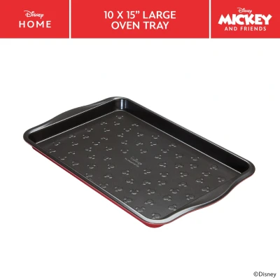 Prestige New Disney Bake with Mickey Mouse Oven Tray Non Stick Large Baking 10" x 15", Carbon Steel Bakeware, Red & Black
