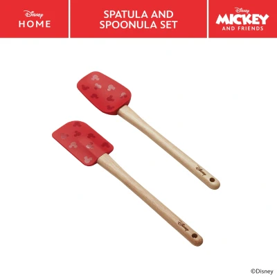 Prestige New Disney Bake with Mickey Mouse Silicone Spatula Set of 2 Wooden Handles, Spoonula & for Non Stick Pans, 29cm