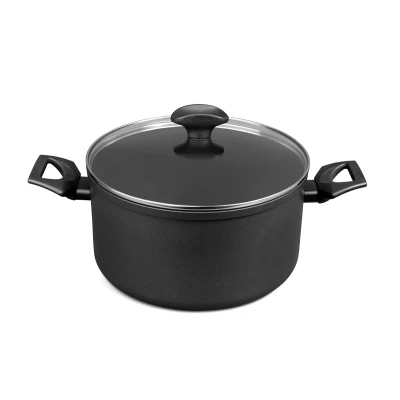What sets the Prestige 9xTougher Stockpot apart is its incredible toughness; it's 9 times tougher than traditional titanium cookware. This remarkable feature ensures longevity, allowing the stockpot to withstand the rigors of daily cooking while maintaining its pristine appearance. The durable, dimpled surface is designed to resist scratches, making it suitable for use with metal utensils, while promoting healthier cooking options with less oil.