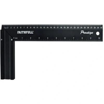 General description The Faithfull Prestige Try Square is designed for accurately marking out 90° angles, featuring ruled metric and imperial markings. It is manufactured from high-quality aluminium and CNC machined for precision, ensuring high accuracy in your measurements. The square is black anodised, providing protection against corrosion and scratches, and features a laser engraved gauge for clear reading. Technical specifications Material: Aluminium Length: 300mm (12in) MPN: 718L30 EAN: 5023969319209 Other information