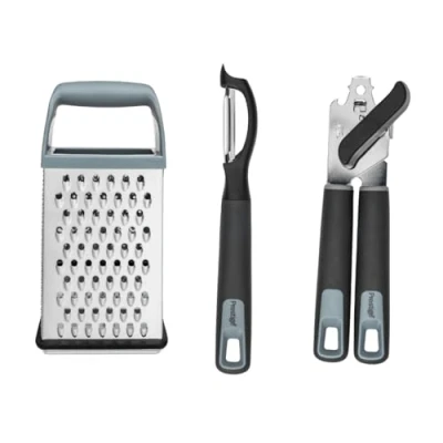 MEAL PREP UTENSILS: Includes Potato Peeler, Can Opener, and Cheese Grater for everyday kitchen tasks. SHARP & EFFICIENT: Stainless steel blades ensure smooth peeling, opening, and grating. COMFORTABLE GRIP: Soft-touch handles provide a secure, comfortable hold. DURABLE CONSTRUCTION: Built to last with high-quality materials. DISHWASHER SAFE: Easy to clean for maximum convenience., Manufacturer: Meyer Group Ltd