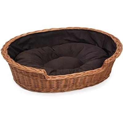 Prestige Wicker Dog Bed Basket with Cushion, Medium, Dark