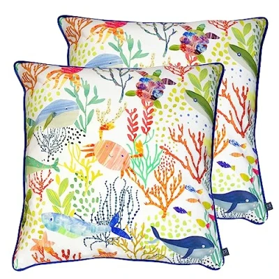 Featuring a colourful print of all things under the sea. Complete with a soft velvet reverse, piped edging and hidden zip closure. Made of a Polyester/Cotton blend, making this cushion super comfy and durable. Designed, printed and made in the UK.