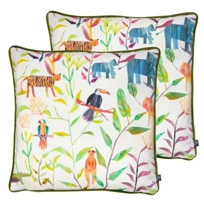 Featuring a playful design of exotic animals and greenery. Complete with a soft velvet reverse, piped edging and hidden zip closure. Made of a Polyester/Cotton blend, making this cushion super comfy and durable. Designed, printed and made in the UK.