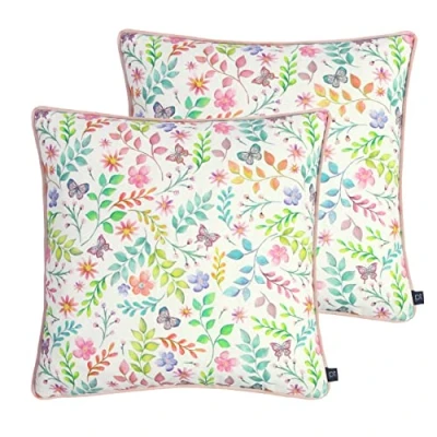 These colourful and elegant cushions meet delicacy and sophistication on these upbeat, Secret Garden cushions. Finished with a piped edge, it adds a dash of style and colour into any room. Floral leaf prints in stunning vibrant colours. Complete with a piped edging and hidden zip closures. Dry Clean Only and Do Not Iron. Made of 100% Cotton, making these cushions super comfy and durable.