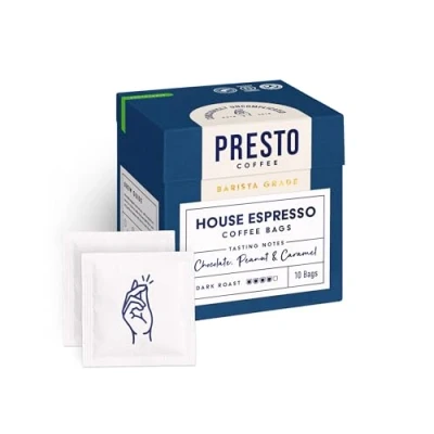Presto Coffee House Espresso Bags, 80g Smooth & Rich Medium Roast Convenient Single Serve Bags Ideal for On the Go Brewing