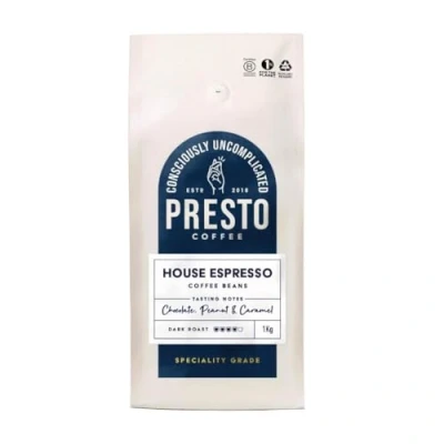 All Presto Coffee is B Corp certified 100% Rainforest Alliance coffee beans 100% Arabica single origin Flavour notes of chocolate, peanut and caramel Medium/dark roast for the optimal everyday espresso