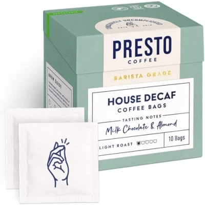 Presto House Decaf Coffee Bags, Premium Medium Roast, 100% Arabica, Naturally Decaffeinated, Rich & Smooth Flavor, Ideal for Home, Office Travel, Individually Wrapped Freshness, 10 Bags