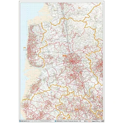 A High Quality Postcode Sector Wall Map. Showing the Entire PR Postcode Area, with Precise Boundaries and Clear Postcode Labels on a Detailed Map Background. A0 Size - 1189mm x 841mm Plastic Coated waterproof / wipeable