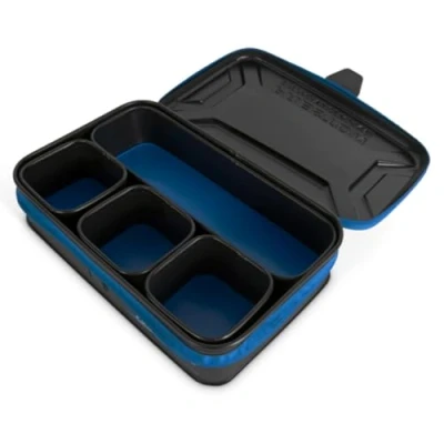 Preston Supera X EVA System - Convenient bait storage! - Dimensions: 40×25.5×9cm - Material: EVA - Includes 4 EVA bait trays (3 small, 1 large) - Magnetic closure on the lid - Handle on top - Double zipper closure - Perfect for feeder fishing! The Supera X Eva System is a handy storage bag designed specifically for transporting multiple bait trays to the waterfront. This bag comes with four EVA bins (three small and one larger) and is ideal for feeder anglers using a seat box or fishing tray. The bag has a double zipper closure and a magnetic feature on the flap, which allows for easy opening and closing even in inclement weather. Equipped with a sturdy handle on the top, the system is perfect for organizing bait during a fishing trip.