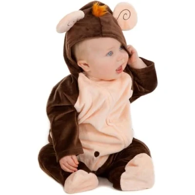 HIGH QUALITY: Durable polyester velour baby onesie, professionally stitched for added durability FEATURES: Two-tone brown and peach design with an "inny" belly button, rubber-soled booties, cute monkey tufted hood, tabulated peach ears with fun spiral stitching, and a curved monkey tail. YKK zip for easy use PERFECT FOR: Ideal for playtime, World Book Day, toddler Halloween costumes, role play parties, or everyday wear EASY TO CLEAN: Machine washable and low maintenance, no need for hand washing or repairs. Parents and kids alike will love it! UNISEX DESIGN: Versatile, unisex design ensures both baby girls and boys enjoy the fun and cuteness, making it perfect for all, Manufacturer: Pretend To Bee