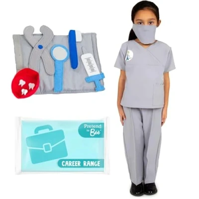 PRETEND TO BEE Dentist Dress Up Bundle, Costume for Kids with Soft Play Tools, Grey, Ages 3 5 Years