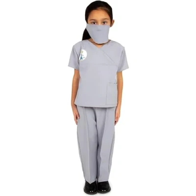 HIGH QUALITY: Made of durable bi-stretch polyester, this kids dentist costume can handle play. Professionally stitched sleeves and edges, along with a flared waist hem, add authenticity and durability FEATURES: Includes a realistic medical grey scrub tunic with a V-neck design, breast pocket, and dentist tools print. The set comes with a matching facemask and scrub trousers with a front leg seam for immersion PERFECT FOR: Ideal for organized events or playtime, this dentist kids costume is perfect for boys and girls at role-play parties, educational scenarios, Halloween, or World Book Day. They'll be the most qualified in case of a dental emergency EASY TO CLEAN: Machine washable and low maintenance, this kids fancy dress costume requires no handwashing. Professional craftsmanship and stitched details eliminate the need for repairs UNISEX DESIGN: Suitable for all genders, this dentist doctor set offers excellent wear and value for money as part of a kids' dress-up collection, Manufacturer: Pretend To Bee