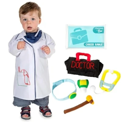 HIGH QUALITY: The padded doctor's bag is made of durable poly-cotton with a professionally stitched handle and a secure Velcro fastening for a complete and premium finish. All plush soft toys are securely stitched and stuffed for safe play FEATURES: White coat with central divide ‘DOCTOR ON DUTY’ print & red & silver stethoscope motif. Inner Velcro fastening Elasticated face mask included. Includes a black carry bag with a red plush handle and 'doctor' embroidery. Inside, there are 4 soft play tools: a stethoscope, a head torch, a medicine bottle, and a reflex hammer PERFECT FOR: Ideal for fancy dress occasions such as career-day learning, parties & even use as Halloween costume kids will love. Now they’ll always be on call! EASY TO CLEAN: Machine washable and low maintenance. No need for handwashing or repairs due to meticulous stitching and quality materials UNISEX DESIGN: PRETEND TO BEE accessories are made for girls & boys in mind, so that no one is left out of the fun! This inclusive occupational costume accessory set offers as much wear and value for money as possible, Manufacturer: GSC
