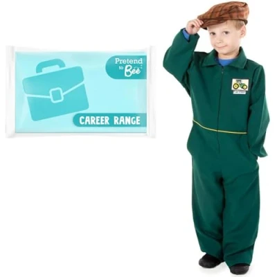 HIGH QUALITY: This 2-piece farmer costume set includes a traditional brown check flat cap and bottle green overalls for kids. The overalls feature yellow piping, a 'farmer' and tractor graphic on the chest FEATURES: The set comprises a flat cap and kids' farmer overalls with a brown check pattern, rounded yellow piping, and chest graphics. The color-coded zip adds to the costume's authenticity PERFECT FOR: Whether it's an organized event or playtime at home, this premium-quality farmer costume promises loads of fun. It's ideal for Halloween, Christmas parties, or gatherings. Kids can round up their friends for farmyard adventures EASY TO CLEAN: Machine washable and low maintenance, no need for handwashing or repairs UNISEX DESIGN: Suitable for both boys and girls, this versatile and unisex farmer costume ensures that everyone can join in on the fun. Perfect for kids who love dressing up, Manufacturer: PRETEND TO BEE