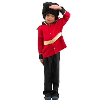 HIGH QUALITY: Premium Royal Queen’s Guard costume made of ultra-soft bi-stretch polyester and durable leatherette detailing. Neatly stitched hem throughout for a polished look and resistance to tears FEATURES: Red bi-stretch polyester jacket, wrist cuffs with gold trim, hand-stitched detail, and a white belt with Velcro fastening. Black trousers with elasticated waist, front leg seam, and red side piping. Black bearskin-style hat PERFECT FOR: Ideal for royal tea parties or imaginative play at home. Perfect for various role-play scenarios EASY TO CLEAN: Machine washable, low maintenance, no need for repairs due to professional craftsmanship and materials UNISEX DESIGN: Suitable for both boys and girls, inclusive costume offering maximum wear and value for money, versatile for various dress-up occasions, Manufacturer: PRETEND TO BEE