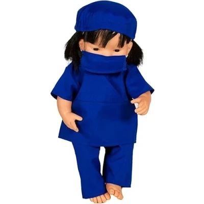 FEATURES: A royal blue tunic and trouser scrub set with matching scrub cap and face mask HIGH QUALITY: 100% Polyester, durable and hard wearing PERFECT FOR: Educational exploration and at home learning EASY TO CLEAN: Gentle machine washable SIZE: Fits most dolls up to 38 cm tall, Manufacturer: Pretend to Bee