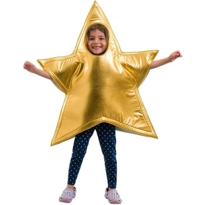 HIGH QUALITY: This is a durable non-stretch gold foil 1-piece star costume with professional stitching on hem edges which ensures longevity and a premium finish FEATURES: A one size style fit gold foil star costume with comfy foam padded arm holes and pointed gold head socket PERFECT FOR: Ideal for Nativity season, role-play, Christmas parties, and Halloween costumes kids will love SIZE: One size style fit UNISEX DESIGN: Suitable for both boys and girls, ensuring everyone can enjoy the fun of dressing up as a star, Manufacturer: PRETEND TO BEE