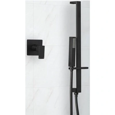 General description Enhance the contemporary feel of your bathroom with the Milano Preto one outlet shower system, which includes a manual shower valve and hand shower slide rail kit. The solid brass manual shower valve features a concealed design for a neat look and an intuitive handle for easy control of water temperature and flow. The premium quality ABS hand shower provides a refreshing spray for a relaxing showering experience and can be perfectly positioned on the slide rail, adjustable to the desired height. A matte black powder-coated finish throughout adds a stylish touch to your bathroom. Technical specifications Type: One outlet shower system Material: Solid brass valve, ABS hand shower Finish: Matte black powder-coated Hose length: 1.75m Minimum recommended pressure: 0.5 bar Valve technology: Ceramic disc to prevent leaks and drips Compatibility and accessories Compatible with all types of plumbing systems Includes: ABS hand shower, 1.75m hose, outlet elbow, and slide rail