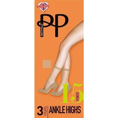 Pretty Polly 3 Pack 15 Denier Ankle Highs PNGEK6 Natural