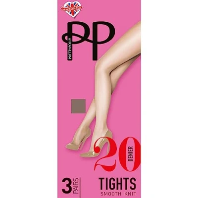 Pretty Polly 3 Pair Pack Chiffon 20 Denier Smooth Knit Tights 2 sizes (SMALL/MEDIUM)