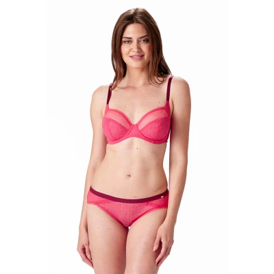 Pretty Polly Women's Delicate Lace Underwire Non Padded Bra Balconette, Opaque, Pink (Watermelon), 38B