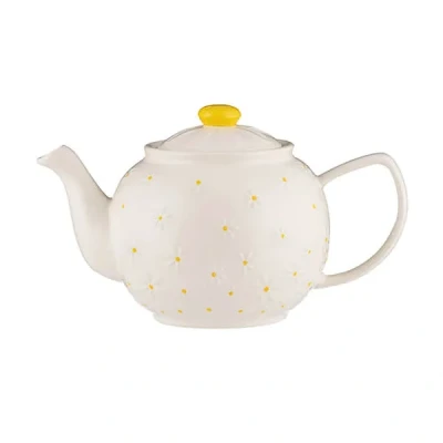 Price & Kensington Daisy Pattern Teapot, 1100ml, White with Yellow Accents, 6 Cup Capacity