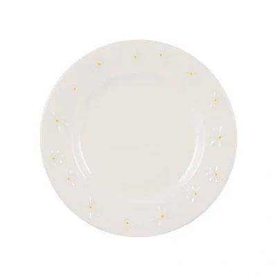 This Price & Kensington Daisy Side Plate features a white glaze with whimsical daisy embossments around the edge each with a delicate hand painted yellow centre.Ideal for serving breakfast, dinner or lunch everyday, this side plate is made from durable stoneware. Suitable for use in the microwave and dishwasher safe for easy and convenient cleaning.Dimensions: 2(H) x 21(W) x 21(L)cm.
