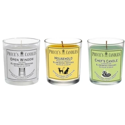 FRESH AIR FRAGRANCE – CLEAN & INVIGORATING Enjoy a crisp, refreshing scent with every light. This Price’s Candle bundle from the Fresh Air range is designed to lift your mood and create a welcoming home environment. SET OF 3 JAR CANDLES FOR LONG-LASTING USE Each jar candle in this set provides continuous fragrance and ambiance. With three candles included, you’ll have hours of freshness for multiple rooms or occasions. 135-HOUR TOTAL BURN TIME Each Price’s Candle delivers up to 45 hours of burn time, giving you a total of 135 hours of clean, odour-neutralizing fragrance—perfect for extended use throughout the week. ODOR ELIMINATING CANDLE FOR A FRESHER HOME Specifically designed to combat unwanted household smells, these odor eliminating candles don’t just mask scents—they help neutralize them, leaving behind only freshness. CLASSIC GLASS JAR DESIGN The stylish jar candle format fits seamlessly into any home decor. It’s both practical and decorative, ideal for kitchens, bathrooms, or any space that needs a burst of freshness. TRUSTED QUALITY FROM PRICE’S CANDLES With over 180 years of candle-making heritage, Price’s Candles offer exceptional quality and performance. Enjoy peace of mind knowing you're buying from a trusted British brand.