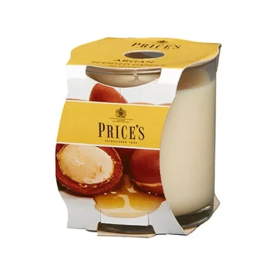 AmazonARGAN JAR CANDLE - Price's Argan jar candle combines its nutty, vanilla and amber scents along with its Moroccan feel to create a musky, calm, woody aroma. Our jar candle is the ultimate candle for fragrance fans. Its classic shape and size means you can enjoy your favourite fragrance all day.