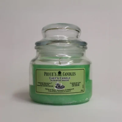 Rid your kitchen of unwanted cooking odours, leaving a clean, fresh fragrance with the Prices Fresh Air Chef's Little Jar Candle. This jar candle contains exclusive Odourfoyl technology, which works by breaking down the molecular structure of unwanted odours and neutralising them rather than just covering up the smell.With extracts of basil, patchouli and geranium alongside the Odourfoyl technology, it will immediately start to work to rid your home of unwanted cooking odours, leaving your room smelling clean and fresh.The Prices Fresh Air Chef's Little Jar Candle is made with the highest quality wax and technology and measures 6cm in diameter and 8.5cm high.