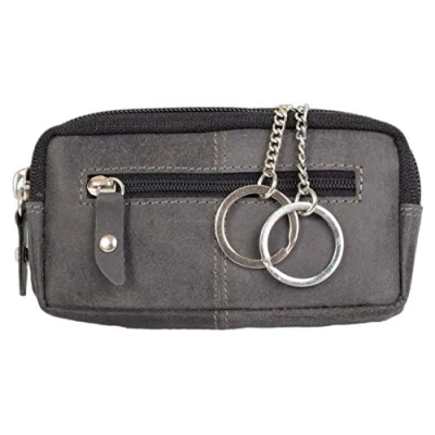 The Pride and Soul key folder made of durable, grey genuine leather is a multifunctional elegant leather accessory for everyday business, travel and leisure The leather case has a large main compartment with 2 key rings and a zip with leather straps as well as another zip compartment for cash, debit cards or coins The integrated RFID film prevents spying out of card information. The compact dimensions allow ideal storage in handbags, backpacks and trouser pockets The key case is manufactured to a high quality thanks to tear-resistant seams and precise cut-outs, and the Pride and Soul embossing sets a striking accent Key organiser with RFID protection, outer dimensions: approx. 12.5 x 6.0 x 2.0 cm, weight: 40 g, material: leather, colour: grey, brand: Pride & Soul Art. No. : 47256, EAN: 4021068422562